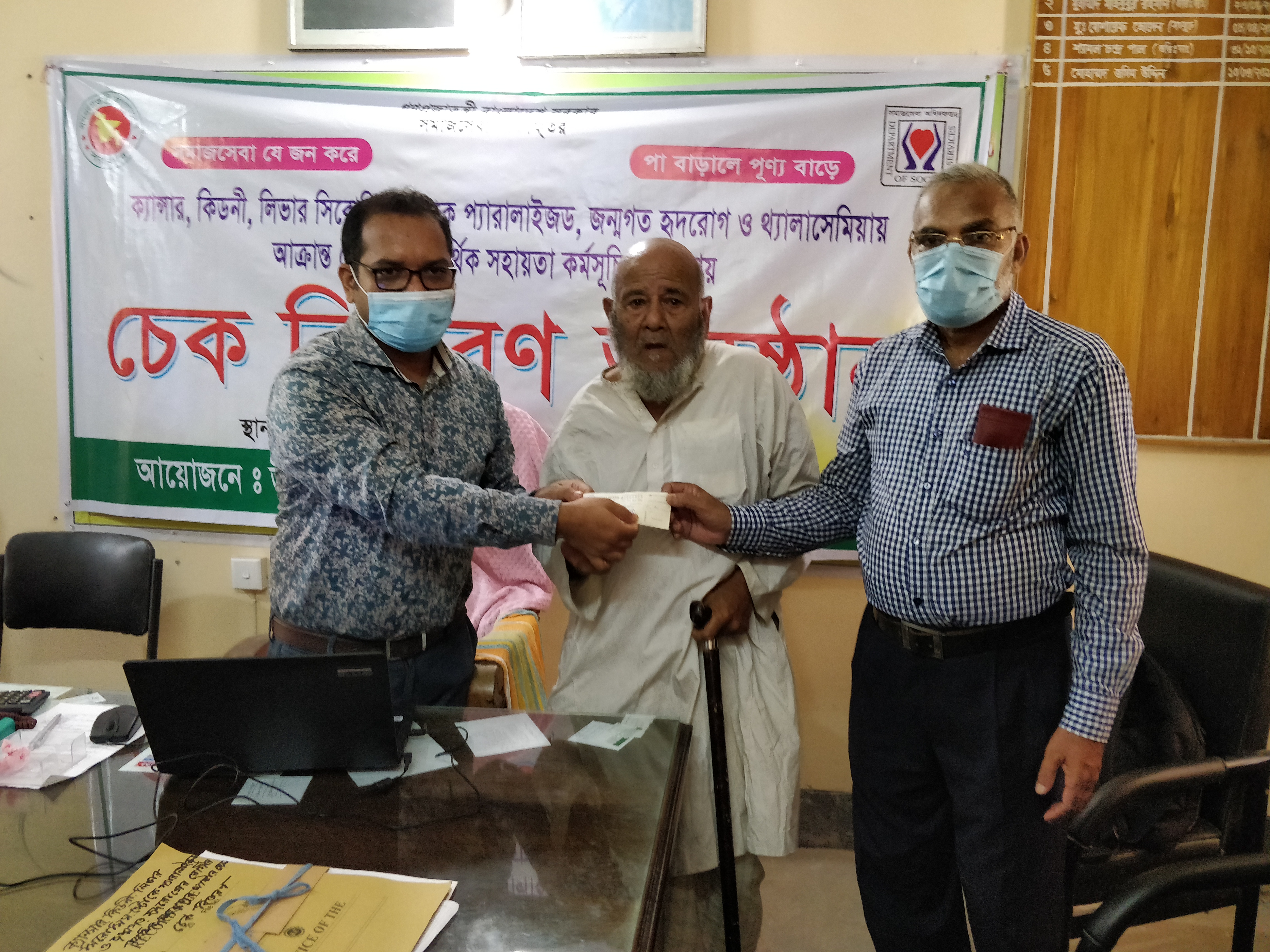 ক্যান্সার, কিডনি, লিভার সিরোসিস, স্টোকে প্যারালাইগড ও জন্মগত হৃদরোগে আক্রান্ত ৪ জন রোগীর মাঝে চেক বিতরণ